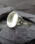Silver ring mount with a solid back setting area simply glue in a 10x8 cabochon. This ring setting has also been very popular with people using resin with ashes for memorial jewellery. NOW AVAILABLE IN GOLD